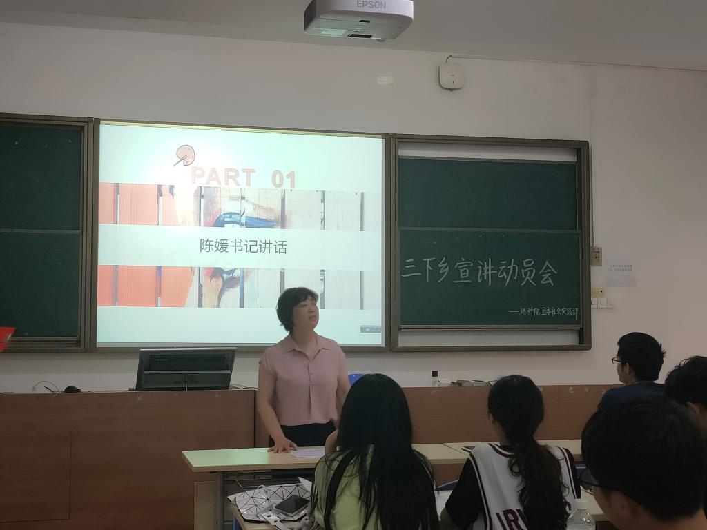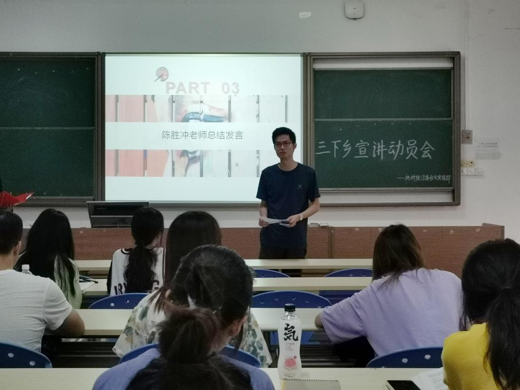 (通讯员:滕召霞)6月30日中午,地理科学学院团委社会实践部在经纬楼227教室举行“三下乡”宣讲会,此次宣讲会由地科院党委副书记陈媛、学工办老师陈胜冲出席,19级、20级各班代表参加。