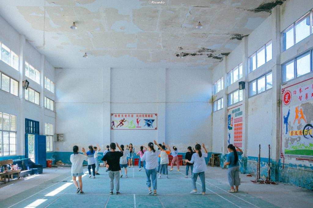 10时左右,负责舞蹈的两个老师带领同学们在羽毛球场学习舞蹈,其间一班班主任来看望在辛苦排练的同学们,并为他们拍照。队长也为同学们送来了水,进一步激发了同学们的学习热情。