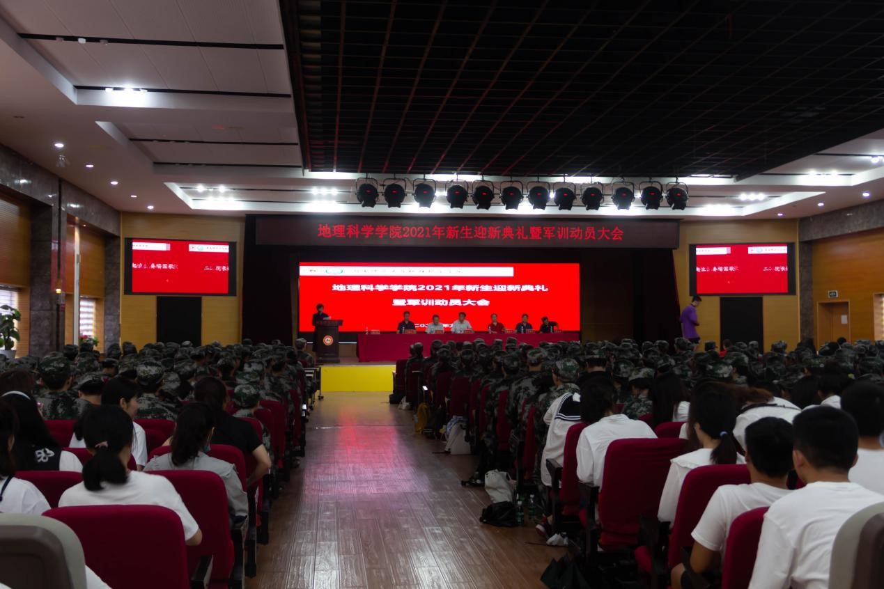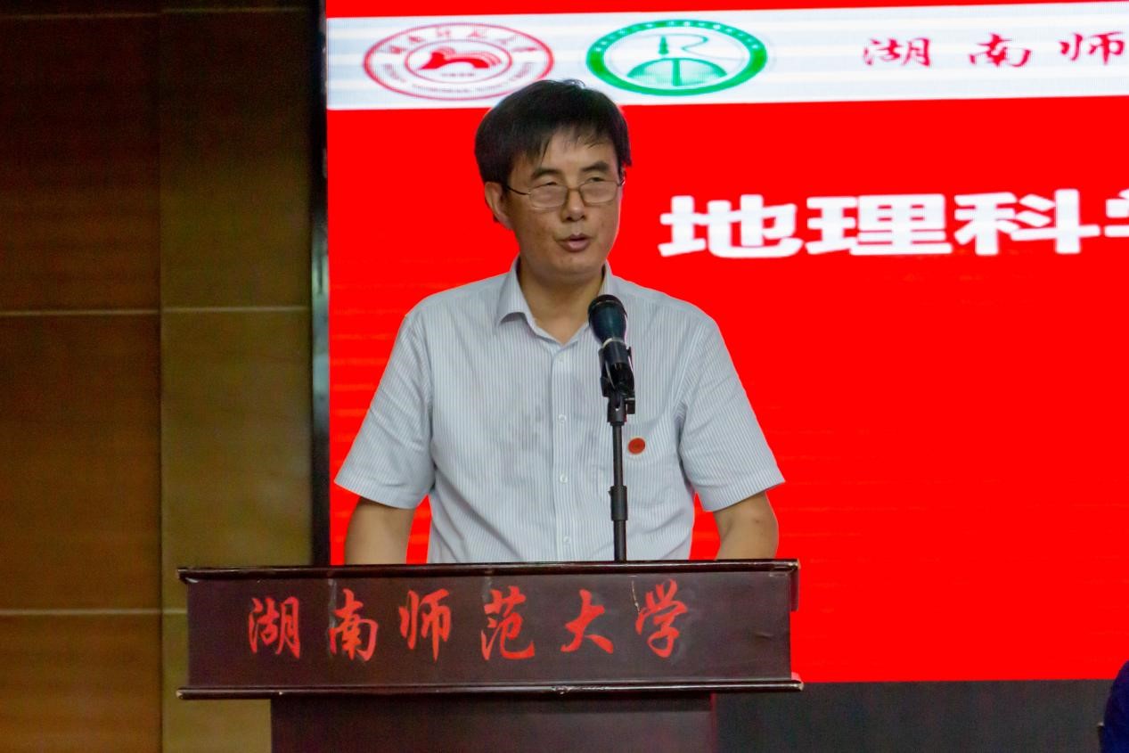 院长谢炳庚代表学院致辞,从学院历史传承、学科专业设置、师资配备力量、科研学术水平、人才培养质量、对外合作交流等层面向新生详细介绍了地理科学学院的情况,通过“经天纬地”和“天地人和”两块石碑,向新生诠释了地理学的价值与意义以及学院的理想与追求。他还嘱咐同学们立大志,引领人生航向;明大德,锤炼青春底色;成大才,练就过硬本领;担大任,肩负时代使命。