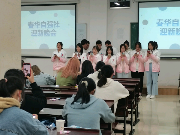见面会开始前,在座的会员们都收到了理事们精心准备的零食和手写贺卡,其中包含着理事们对其真挚的欢迎与祝福。随着小理事们活泼可爱的舞蹈,见面会正式拉开了序幕。小理事们的舞蹈无不彰显着春华自强社的青春与活力。随后,是小理事们欢快动听的歌曲——《哈哈哈》,希望会员们能在“花村”中得到更多的欢乐。中场休息时间,每个人都积极参与到了精彩有趣的活动中去,整个教室暖洋洋的气氛带走了冬日的寒意。活动下半场最开始的节目是手语舞《你笑起来真好看》,以指言情,以舞名志,表达了春华自强社想带给人们更多欢笑的愿望。接下来的歌曲《麻雀》,诉说着小小的麻雀的故事,也体现着春华自强社“冀以尘雾之微补益山海,荧烛末光增辉日月”的初心。节目以合唱《北京东路的日子》结束,悠扬动听的歌声中跃动着的是对“花村”的热爱。节目之后,全员投票,公开透明地选出了一个监事长,一个副监事长,三个监事。