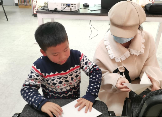 志愿者教小朋友们进行手工制作