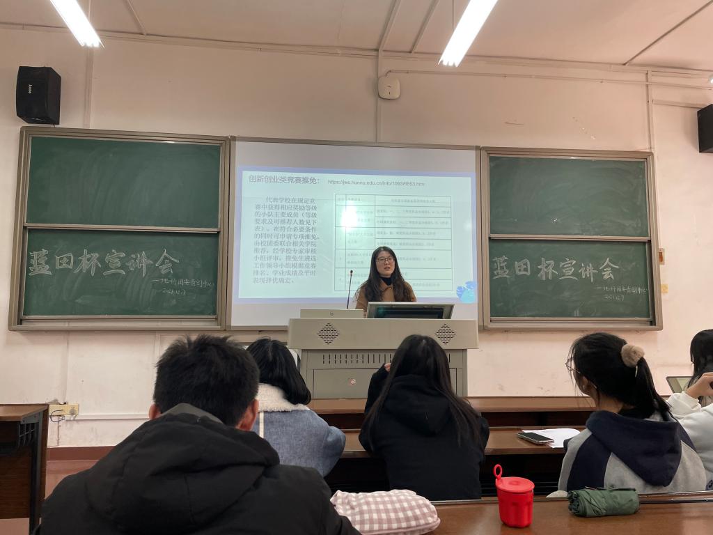 (通讯员 刘正 张紫薇)12月7号中午,地理科学学院(以下简称“地科院”)团委青年创新创业指导中心于地科院226教室举办“蓝田杯”宣讲会。地科院共120名本科生参加此次活动。