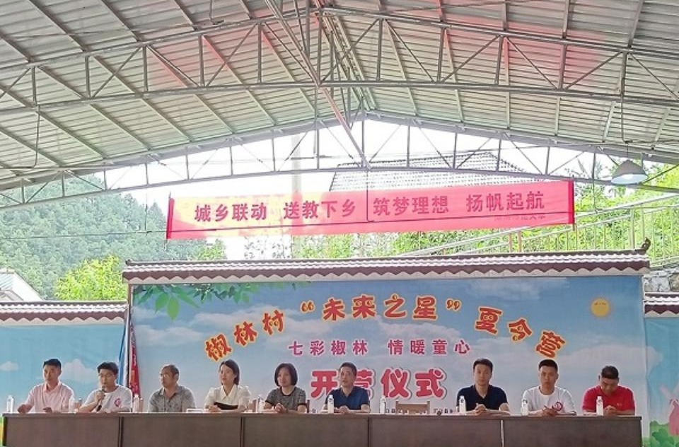 此次开营仪式主题是“七彩椒林,情暖童心”,县交通局局长向书宏,乡党委书记关辉彪,县妇联主席何娅红,县团委书记林磊,策农旅老师李小顺,乡党委副书记刘志,大邵公益党支部书记李迪春,村支部书记尹书山,实践团指导老师张赐成等人出席了此次开营仪式。大会过程中,尹书山对椒林村的具体情况做了介绍,呼吁同学们要学会感恩,努力学习,以张赐成和张俊仪为榜样,也对他们回馈家乡的举动表达感谢,乡党委书记关辉彪对于此次夏令营表达了期望,希望大家能够发挥艰苦奋斗的精神,在展开工作的同时也有机会享受椒林村的美景。