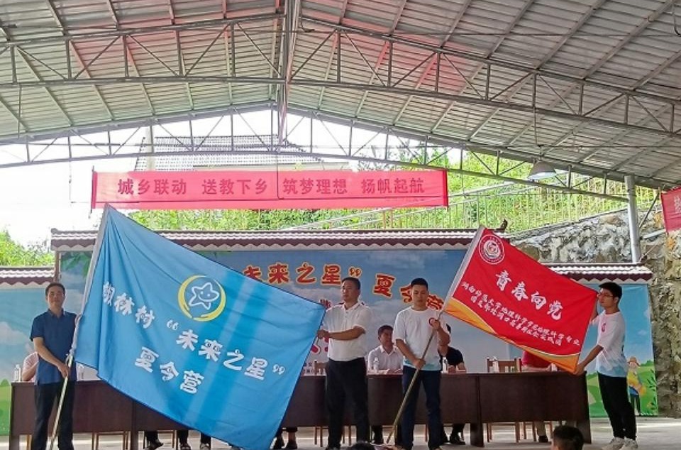 (通讯员 梁艳云)7月6日上午我校地理科学学院地理科学专业团支部赴洞口县暑期实践团在椒林村的夏令营正式开始,实践团全体成员共分为六个小组,在椒林村文化广场迎接在小雨淅沥中赶来报名的家长和学生,帮助学生换上营服,展开开营仪式。