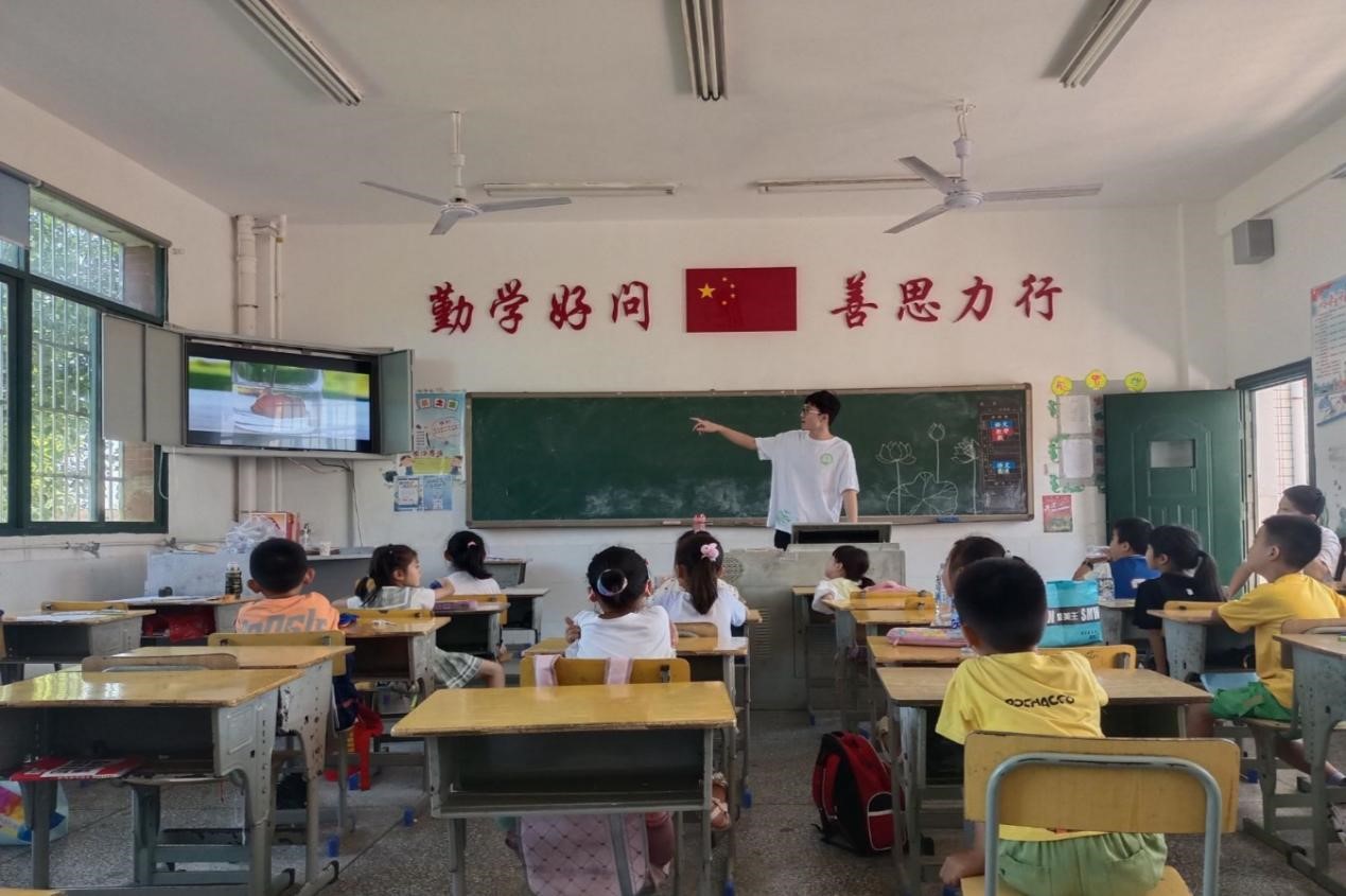 (通讯员 孙雨欣)7月12日上午,为激发和培养学生对科学的学习兴趣与探索精神,地理科学学院“盛夏印记”暑期三下乡社会实践团于绿荷塘小学开展科学实验课。绿荷塘小学部分学生和实践团成员参与此次课程。