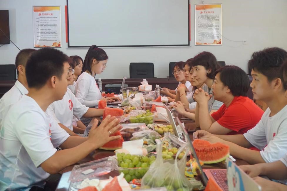 总结座谈会上,我院党委副书记陈媛与椒林村党支部书记尹书山、学工办主任郑楠、指导老师张赐成围绕暑期社会实践进行了深入交流。在听取实践团代表胡彪汇报的本次暑期社会实践成果及队员们结合实践分享的感悟后,我院党委副书记陈媛表示,大学生暑期社会实践必须躬身入局,担起责任使命,发挥专业优势,以饱满的精神状态和工作热情全身心投入到实践中,用心用脑真正为村民、儿童提供精准的科学赋能服务,增长能力本领,磨炼意志品质,让青春在奉献中实现价值。