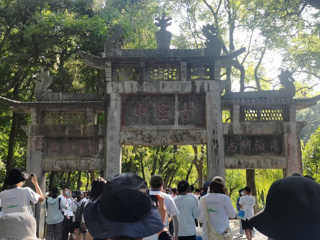 下午,实习队来到襄阳市古隆中景区,在景区内导游的带领下,参观了武侯祠、三顾堂、诸葛草庐等景点,学习了诸葛亮的生平故事和其“不出草庐、便知三分天下”的背后原因,大家都被其鞠躬尽瘁、死而后已的精神所打动。一路上,师生们就各自所看、所想、所思之处进行了交流。