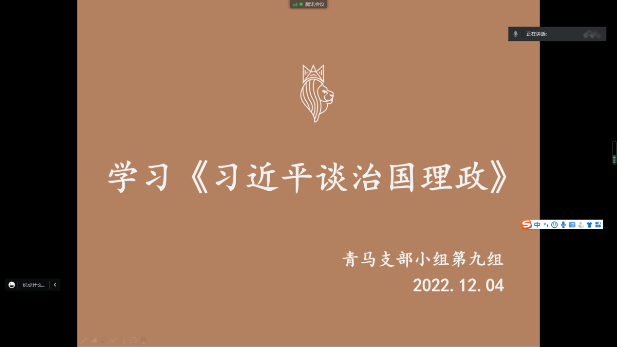 (通讯员 刘思莹 盛婉彤 毛颖婕)12月4日晚,地理科学学院青马支部小组第九组在线上开展了“学习《习近平谈治国理政》”交流会,此次会议由青马支部小组第9组组长刘思莹主持,青马支部小组第9组全体成员共同参与。