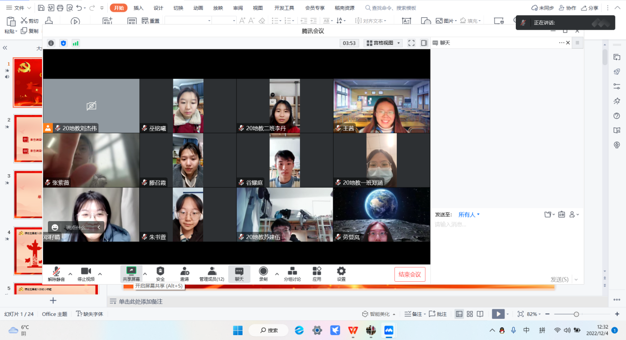 (通讯员 刘杰伟 李思琪 毛颖婕)12月4日中午,地理科学学院青马小组1组通过腾讯会议线上开展了《习近平谈治国理政》学习交流会,此次会议由组长刘杰伟主持,小组全体成员共同参与。