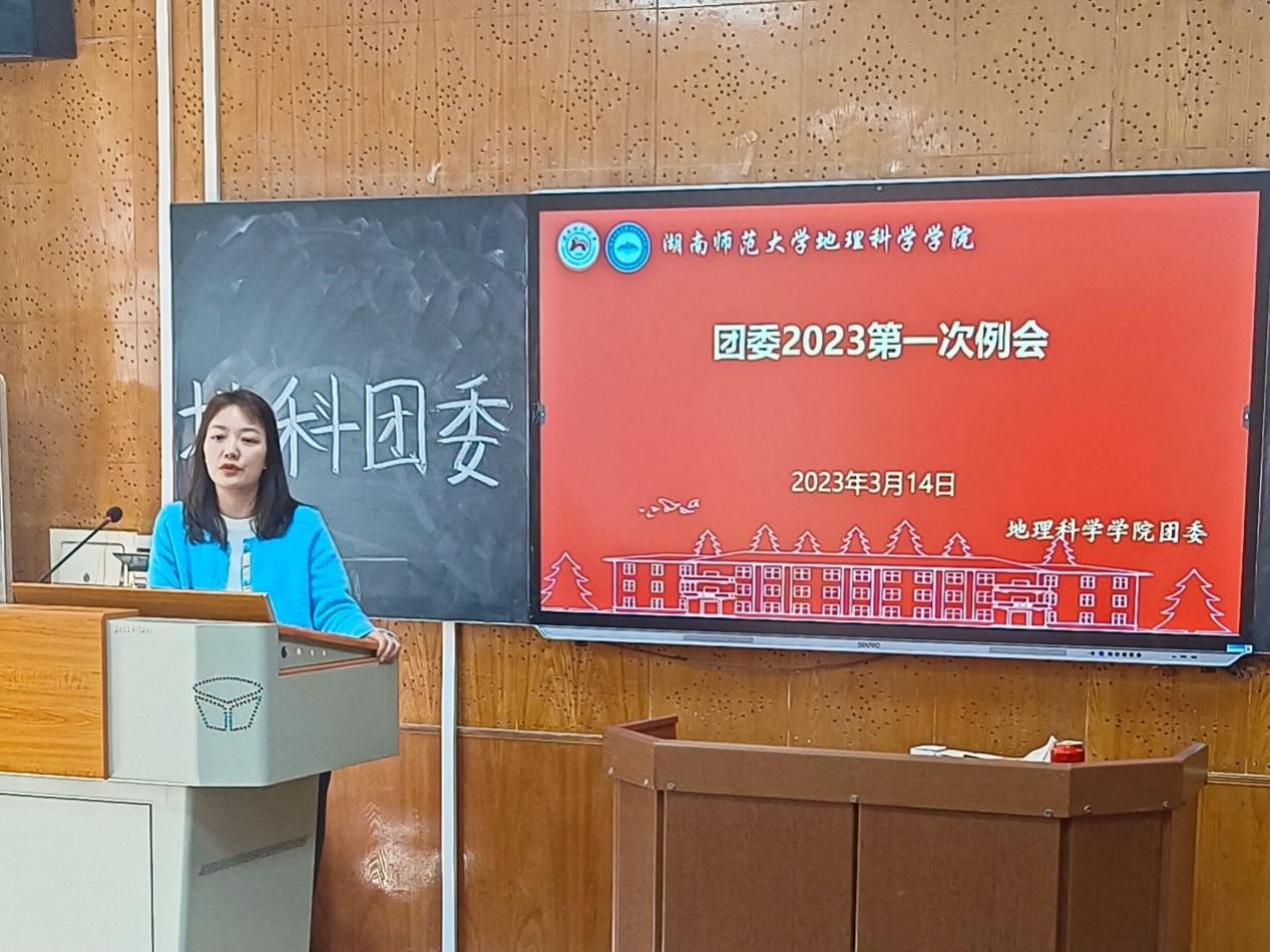 (通讯员 毛颖婕 滕碧辉)3月14日中午,地理科学学院团委第一次例会于213教室召开,院团委指导老师杨惠君出席会议,团委学生副书记李涵妮主持,团委全体学生干部参加。