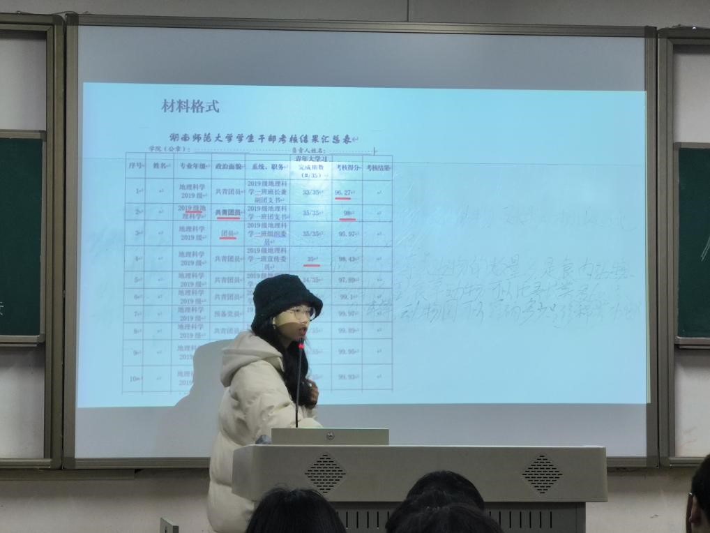 主讲人罗梦怡向学生干部讲解材料格式