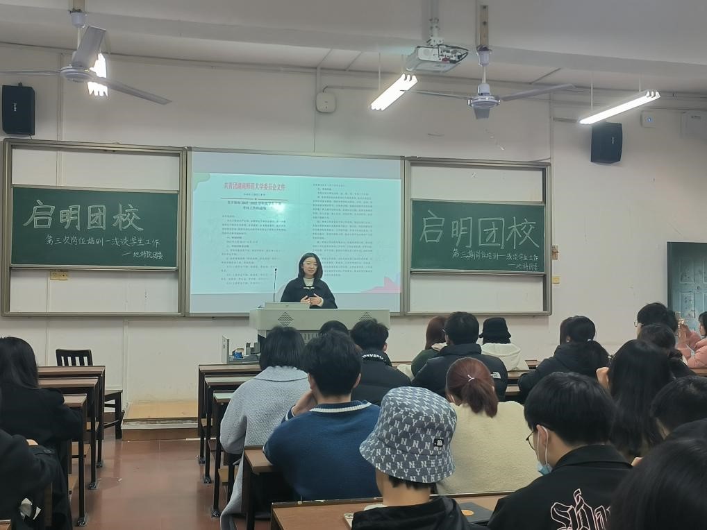 (通讯员 刘嘉乐 卓力莉莎)3月17日中午,地理科学学院(以下简称地科院)启明团校第三次岗位培训——浅谈学生工作,在经纬楼226教室举行,为了让学生干部学习优秀的工作经验,帮助学生干部改进工作方法、提升其综合素质,本期岗位培训邀请了第二十四届团委青年发展工作部部长巫铭曦、副部长罗梦怡作为主讲人向学生干部分享工作经验。