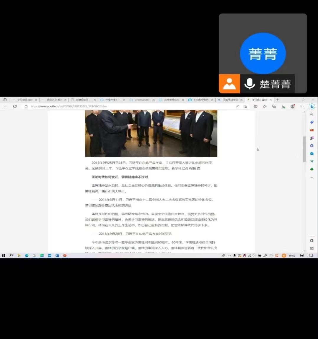 (通讯员 楚菁菁 盛婉彤)3月21日晚,地理科学学院青马小组第10组在线上开展了学习“习近平总书记对深入开展学雷锋活动作出的重要指示”交流会,此次会议由青马小组第10组组长楚菁菁主持,小组全体成员共同参与。