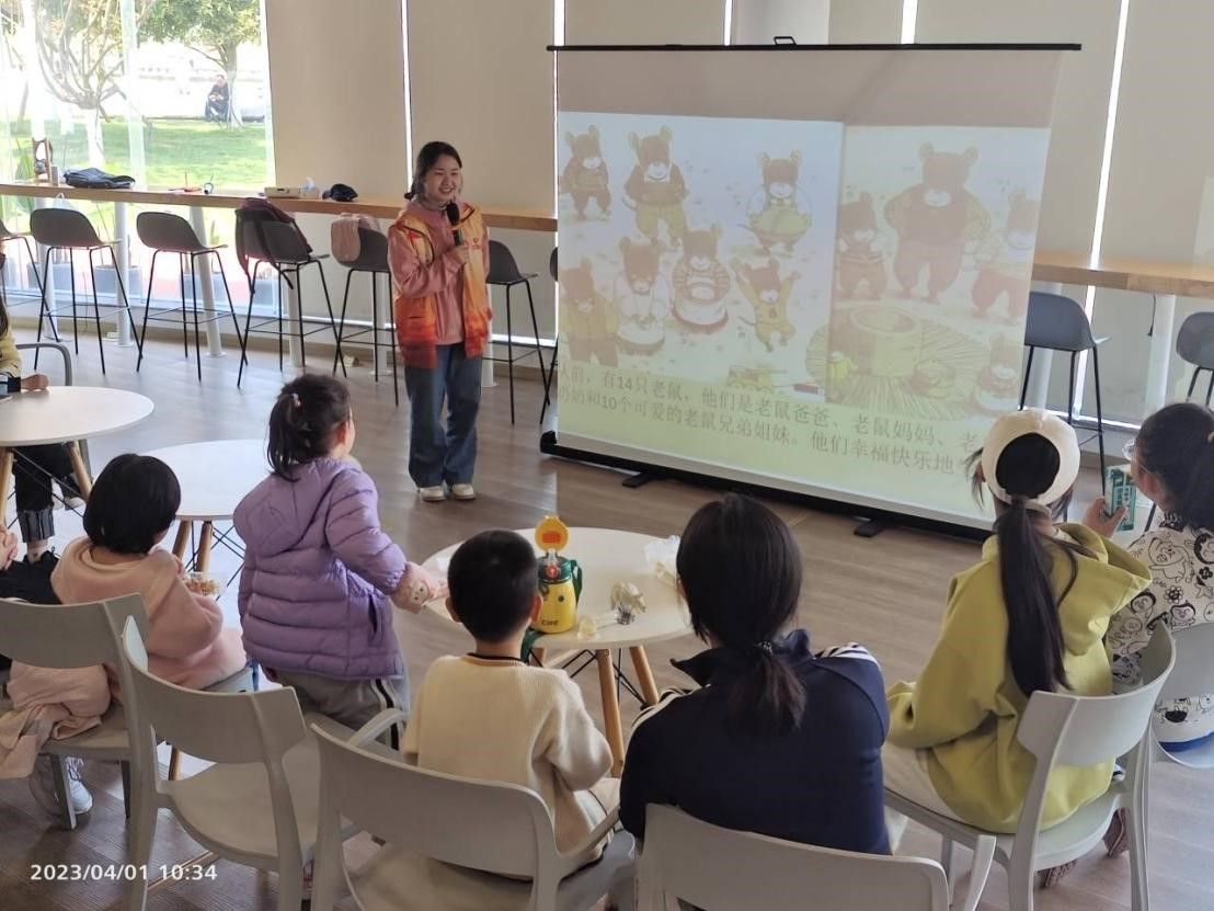 志愿者讲解《14只老鼠捣年糕》绘本故事