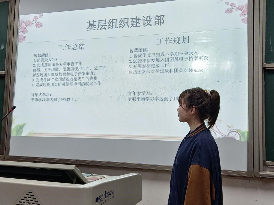团委基建部负责人陈茜娜从工作效率、工作合作与工作成果等几个方面对过去一年的工作进行阐述与汇报,并讲述了对未来的工作规划。青发部部长卓力莉莎随后发言,她认为学生工作需要从不足中汲取经验,同时要增强责任感,认真对待每次工作。