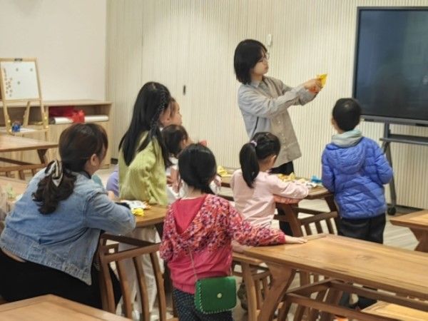 社团理事和小朋友们一起折纸