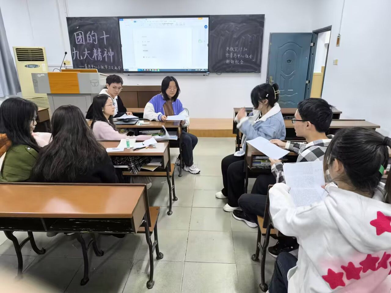 小组成员积极讨论团十九大精神