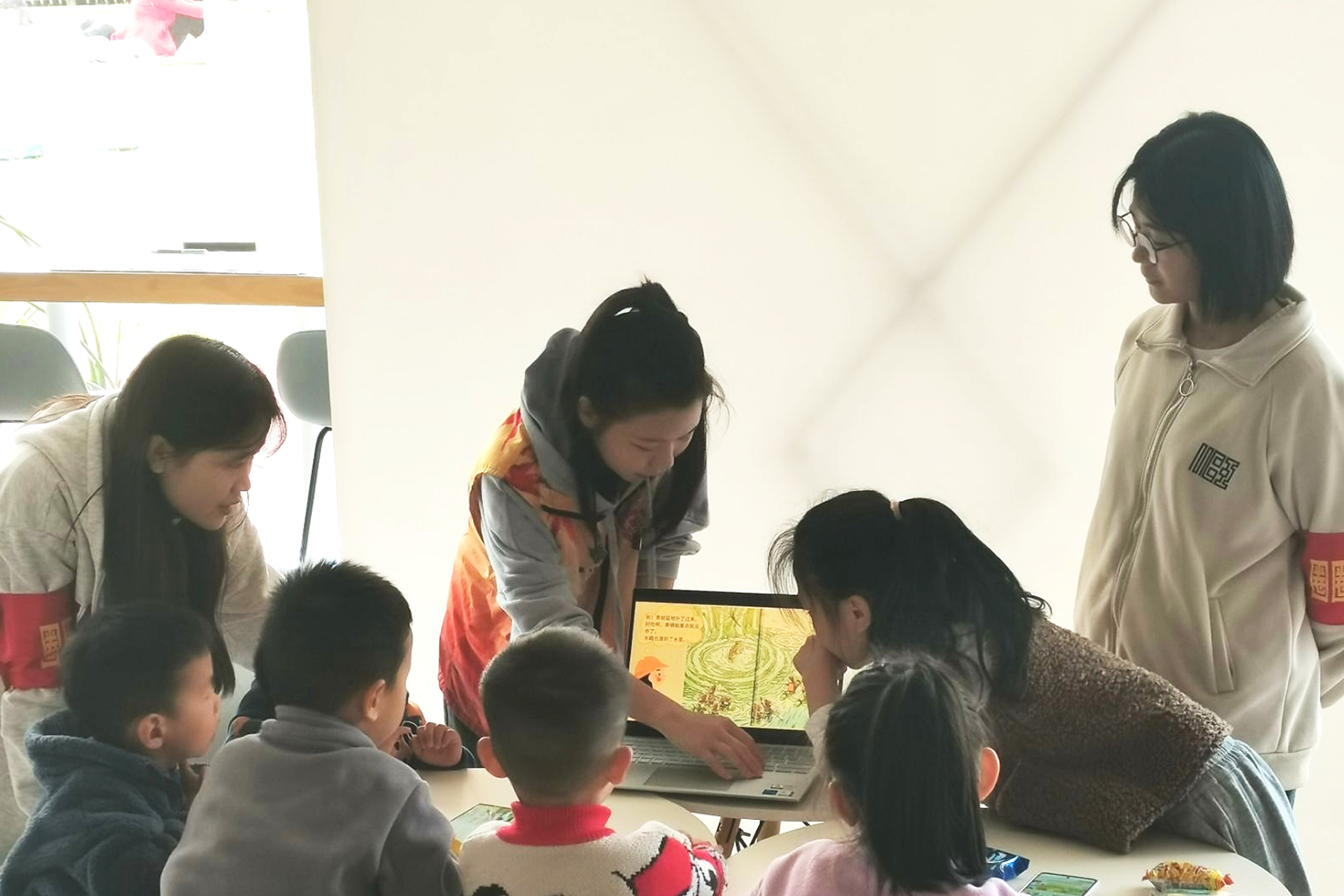 图为活动接近尾声,志愿者对此次绘本小课堂进行总结。