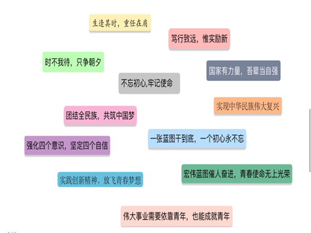 郭楚涵向小组成员讲解了十九大精神各方面的意义所在,并进一步介绍了习近平总书记在十九大中对于青少年的寄语,提出在建设道路上青年大学生应该付出怎样的行动去增强自身的十九大精神和促进十九大建设。小组成员一致认为,大学生应该提高实践能力,促进理论与实践相结合,应该在提高自己思想建设的同时促进自己的知识理论丰度。在活动的最后,小组成员对于关于十九大精神的一些看法进行了讨论,并以拼贴诗句的活动结束了此次小组活动。
