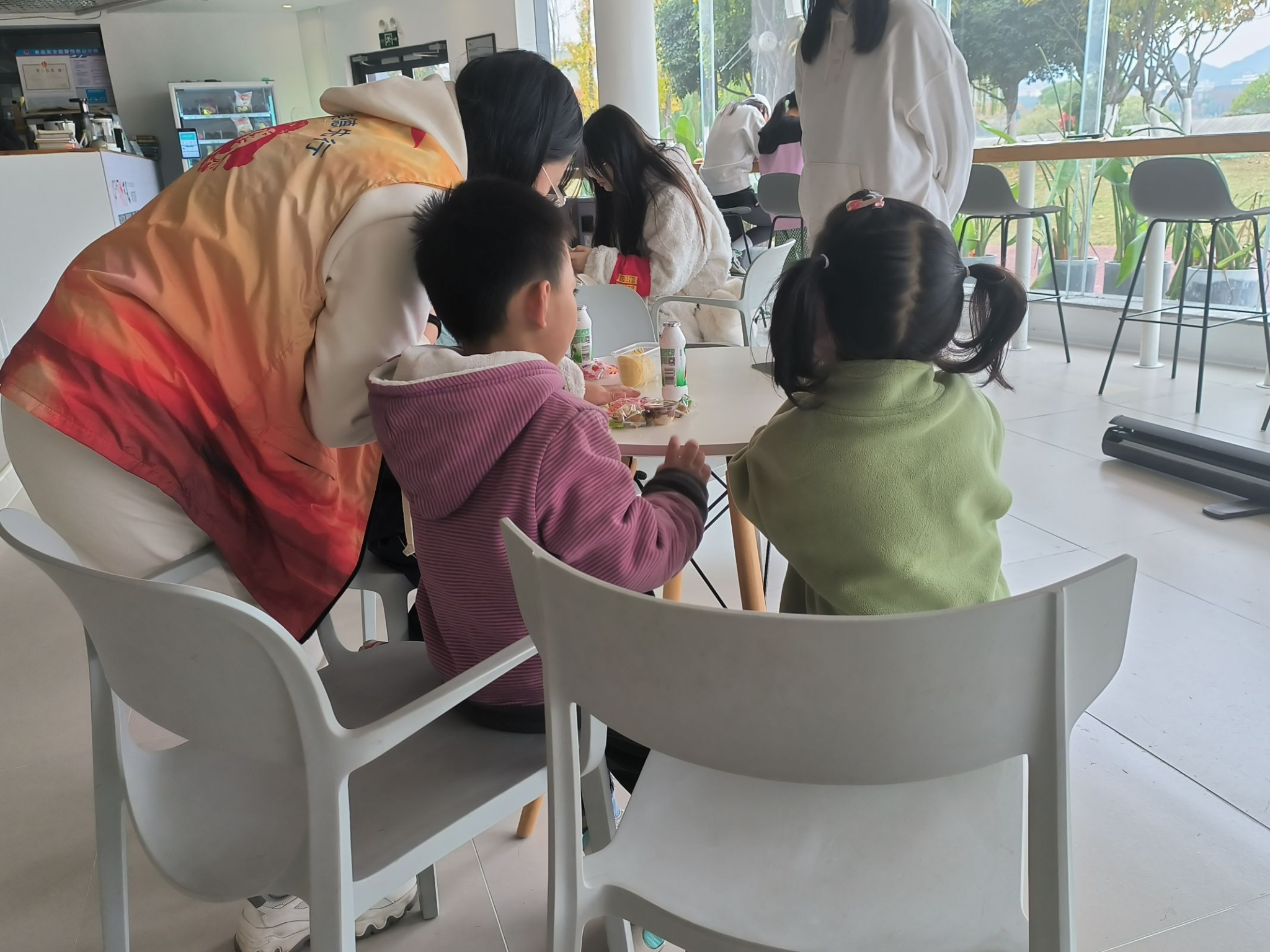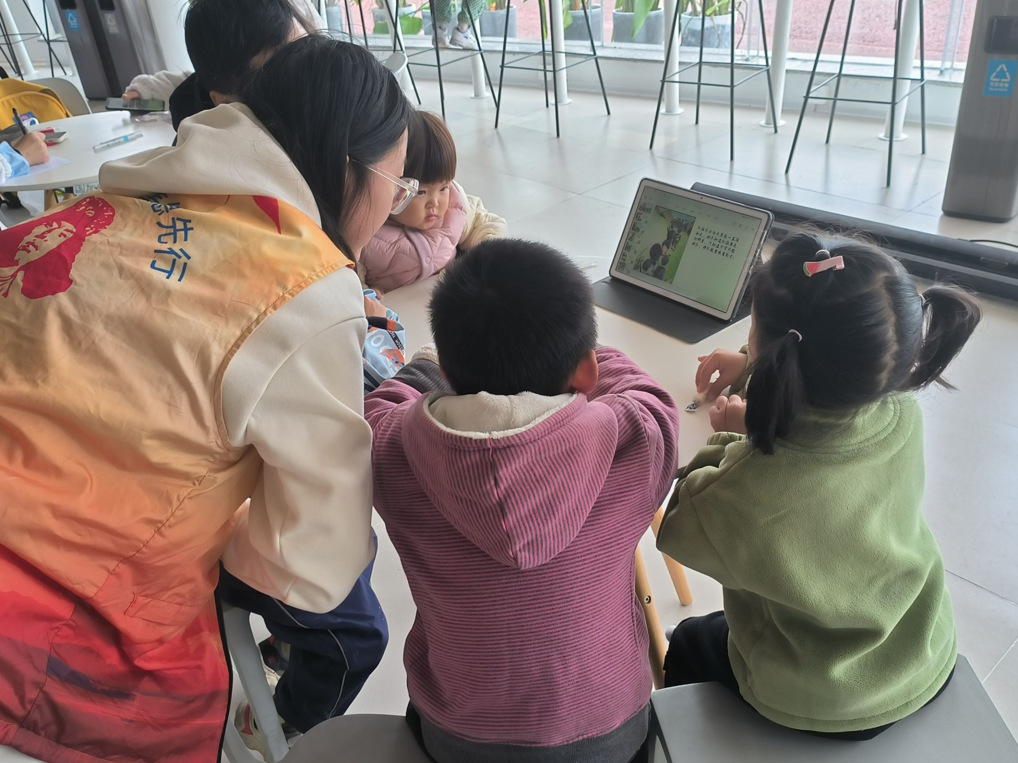 图为活动开始前,志愿者邀请孩子们进入书屋参与此次活动,并安排家长们有序签到入座。
