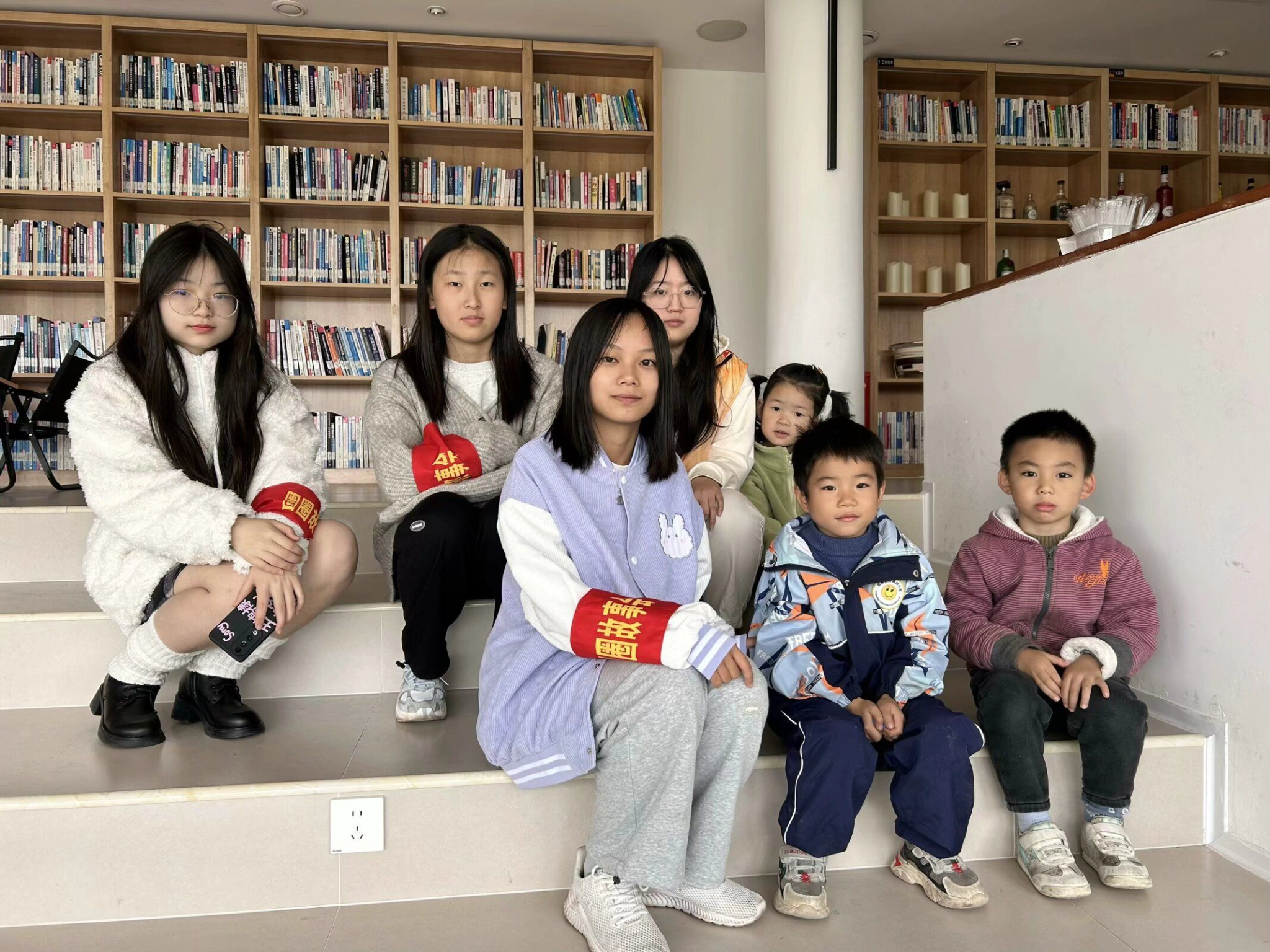 图为“绘本里的知识天地”志愿者与小读者们合影留念。