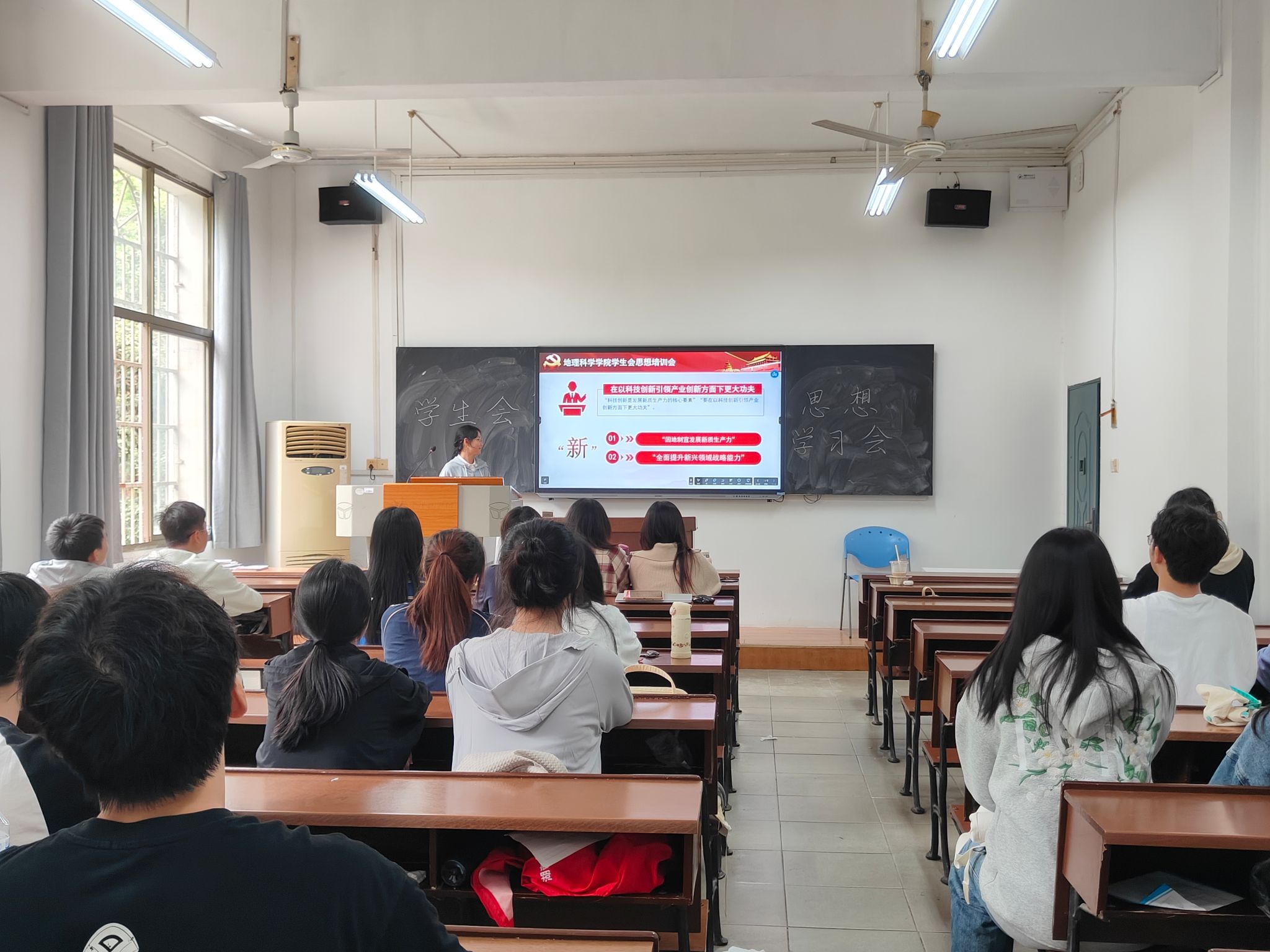(通讯员 黄正宇 徐祎程)为深入学习宣传习近平总书记在湖南考察时的重要讲话和指示精神,4月19日中午,地理科学学院(以下简称“地科院”)学生会在经纬楼215教室召开相关思想培训会。办公室主任申恋担任此次培训会主讲人,地科院学生会全体成员参加此次培训会。