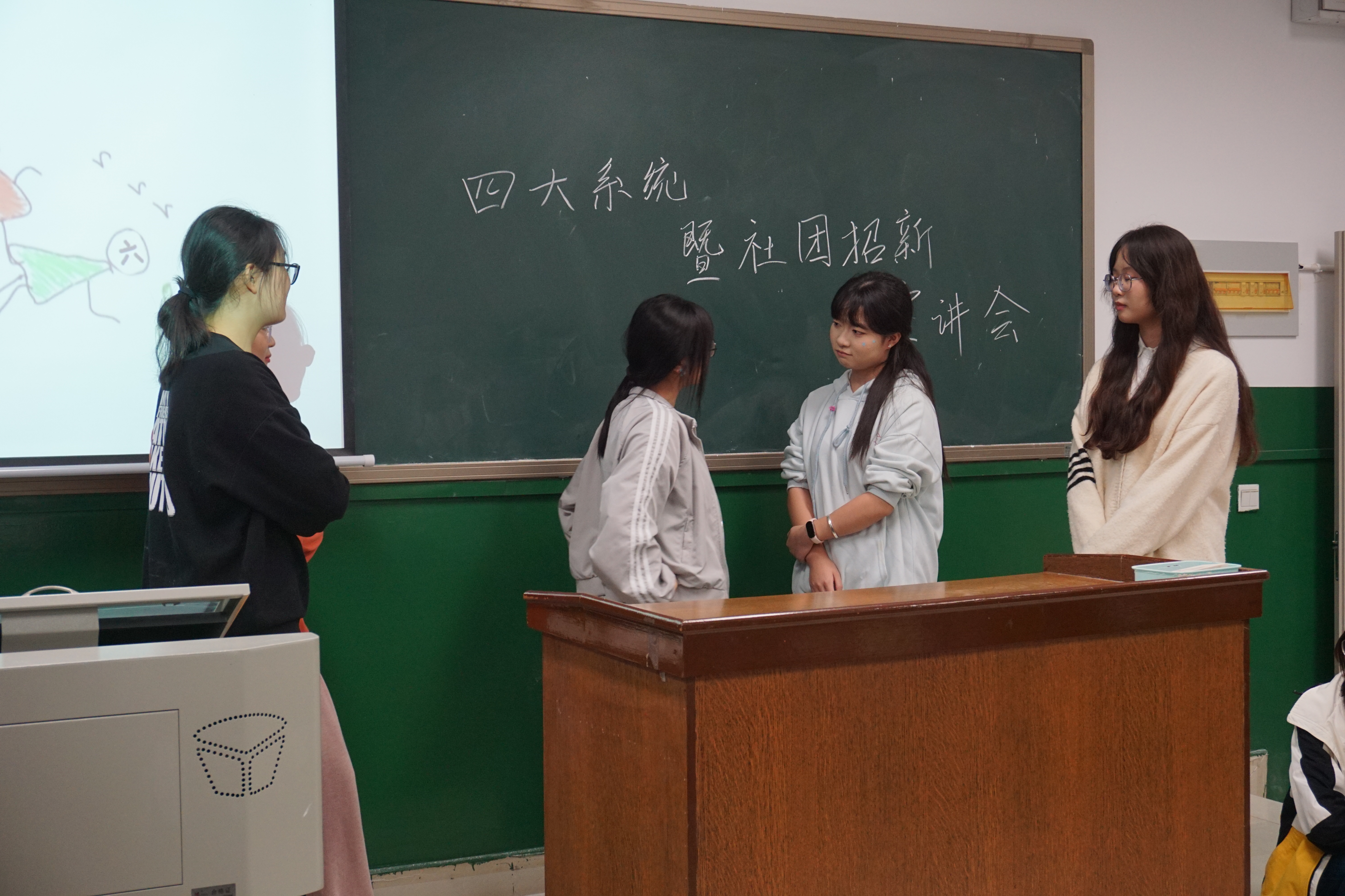 宣讲会上,四大系统与社团的负责人依次上台,进行宣传介绍,围绕着系统的主要工作内容和社团的活动做了简短的介绍,并讲解了招新的相关要求。系统和社团负责人纷纷表示对新生的期待与欢迎。为了活跃气氛,负责人为新生们准备了配音表演与小品。在最后的互动环节,同学们踊跃提问,积极参与,现场氛围活跃。