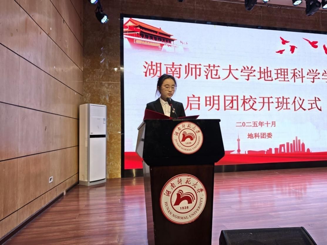 蒋迎乐分享团校学习收获,鼓励学弟学妹夯实基础,转化理论技能为成长动力。在典礼的最后阶段,2025级地理科学专业骆柯睿作为学员代表发言,表达对团校课程期待,号召学员坚定信念、锚定目标、练就本领。
