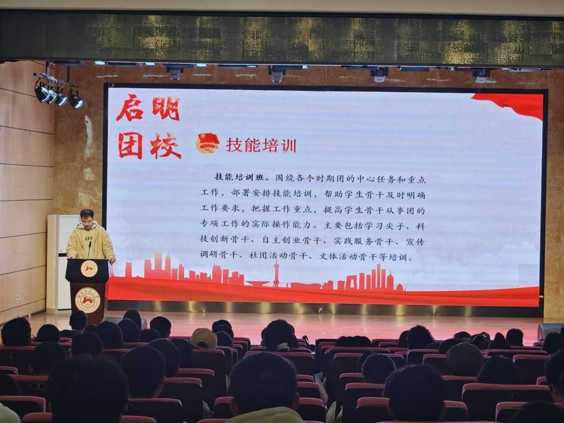 在典礼开始阶段,周沐进行致辞,向各位学员分享了他的工作发展经历,强调团员工作的职责担当,在欢迎新学员的同时,周沐向学员们介绍了启明团校的宗旨,“启明”的意义以及理论、技能、岗位培训主要学习内容,并向学员们提出明确要求与期望,要求学员严守纪律、深耕学习、坚定信念。