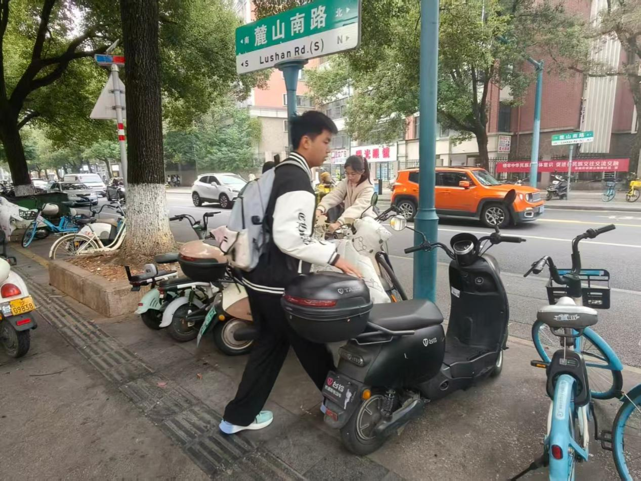 活动开始前,志愿者们提前到场并了解路况以便活动有序开展。清理活动正式开始,志愿者们分为两组,分别负责清理麓山南路左右两侧的盲道,志愿者们将占道车辆一一挪开并摆放整齐,同时将盲道上的杂物清理干净,保障盲道的可用性。清理完毕后,志愿者们向周围商铺宣传了保持盲道畅通的重要意义。