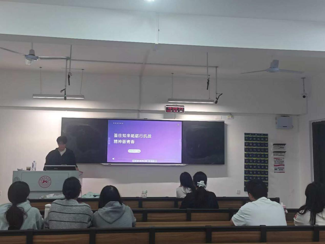 (通讯员 张航 何冯威)为深入学习习近平总书记在纪念中国人民抗日战争暨世界反法西斯战争胜利80周年大会上的重要讲话,11月6日下午,地理科学学院(以下简称“地科院”)青马小组第十二小组于实训楼301教室开展了“鉴往知来,砥砺前行——抗战精神指引下的青年担当”主题研讨会。此次活动由组长张航主持。