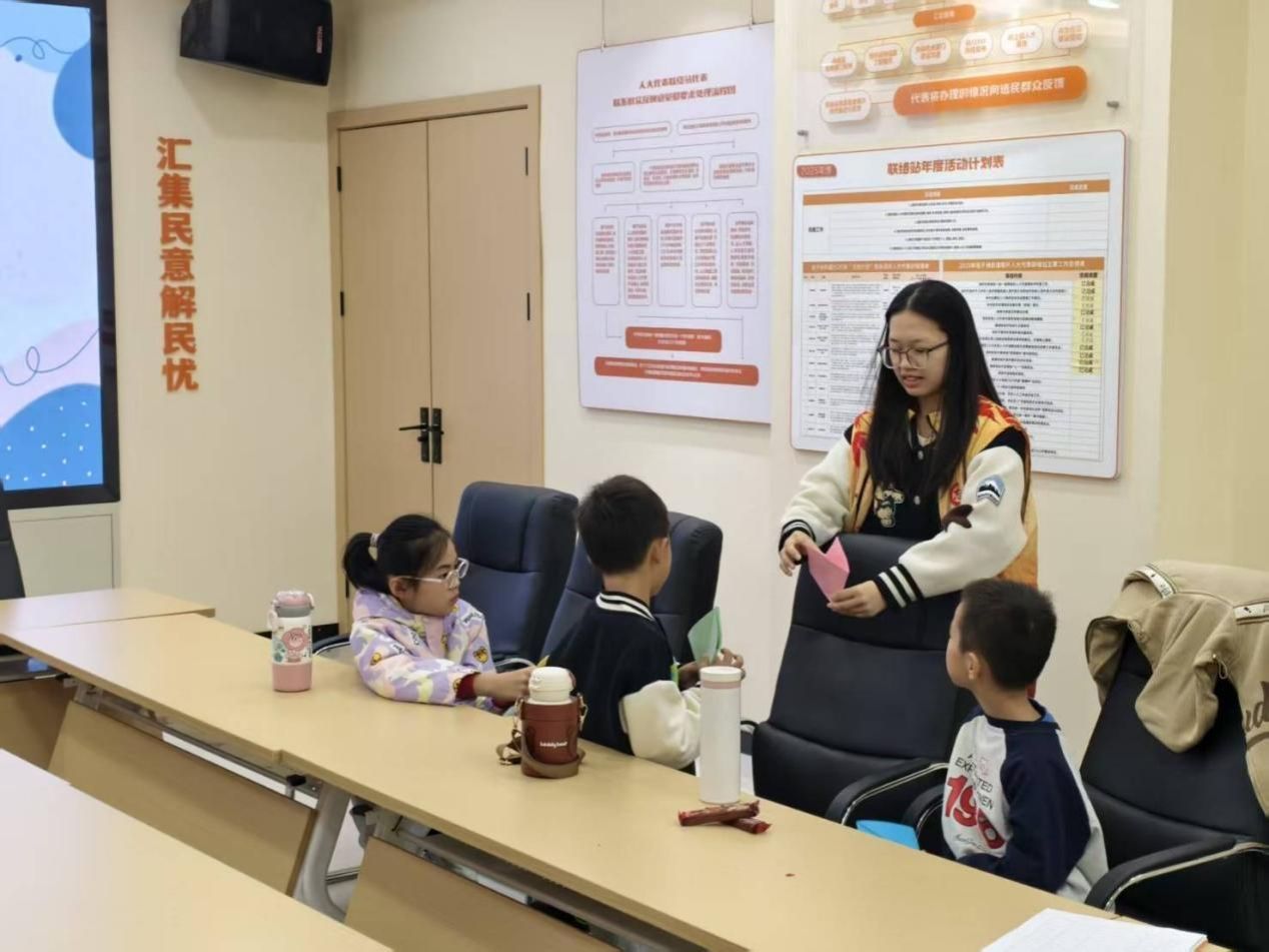 活动开始前,志愿者们提前到场布置好活动场地以便活动有序开展。在小朋友们进行签到并落座后,绘本活动正式开始。主讲人以灰雁的典型特征为切入口,激起小朋友对绘本内容的兴趣。志愿者在讲解绘本过程中,穿插了有趣的热场活动“蝴蝶飞飞”,这不仅调动了小朋友们参与的积极性,同时也活跃了现场氛围;在折纸环节,小朋友们纷纷选择了自己喜欢的彩纸并折出了自己心目中的大雁。活动结束,志愿者与小朋友们合影留念并打扫了场地。
