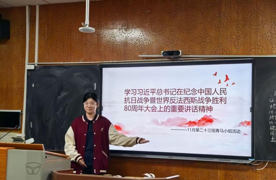(通讯员 陈怡阳 王玉红 陈依诺)11月8日中午,地理科学学院青马小组第二十三小组于经纬楼213教室召开以“学习习近平总书记在纪念中国人民抗日战争暨世界反法西斯战争胜利80周年大会上的重要讲话”为主题的理论学习,小组九名成员共同参与。