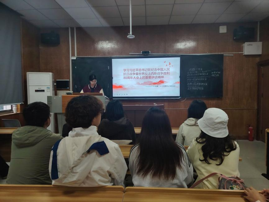 (通讯员 叶宇浩 田健)为深入学习习近平总书记在纪念中国人民抗日战争暨世界反法西斯战争胜利80周年大会上的重要讲话,11月8日下午,地理科学学院(以下简称“地科院”)青马小组第二十四组于经纬楼213教室开展了“鉴往知来,砥砺前行——抗战精神指引下的青年担当”主题研讨会。此次活动旨在更好地学习重要讲话精神,更好地领悟伟大抗战精神,并以此为锚点,指导今后的学习生活。