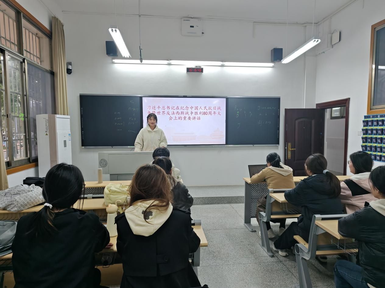 活动伊始,由组长刘诗瑶带领小组成员重温抗战历史,通过文献研读、影像片段赏析等形式,深入解读抗战精神的核心内涵与时代价值,回顾革命先辈在民族危亡之际挺身而出的英勇事迹。在交流研讨环节,学员们结合自身学习生活,围绕“新时代青年如何传承抗战精神”展开讨论,表示要以先辈为榜样,将爱国情怀转化为学习动力,在专业钻研、社会实践中践行青年责任。