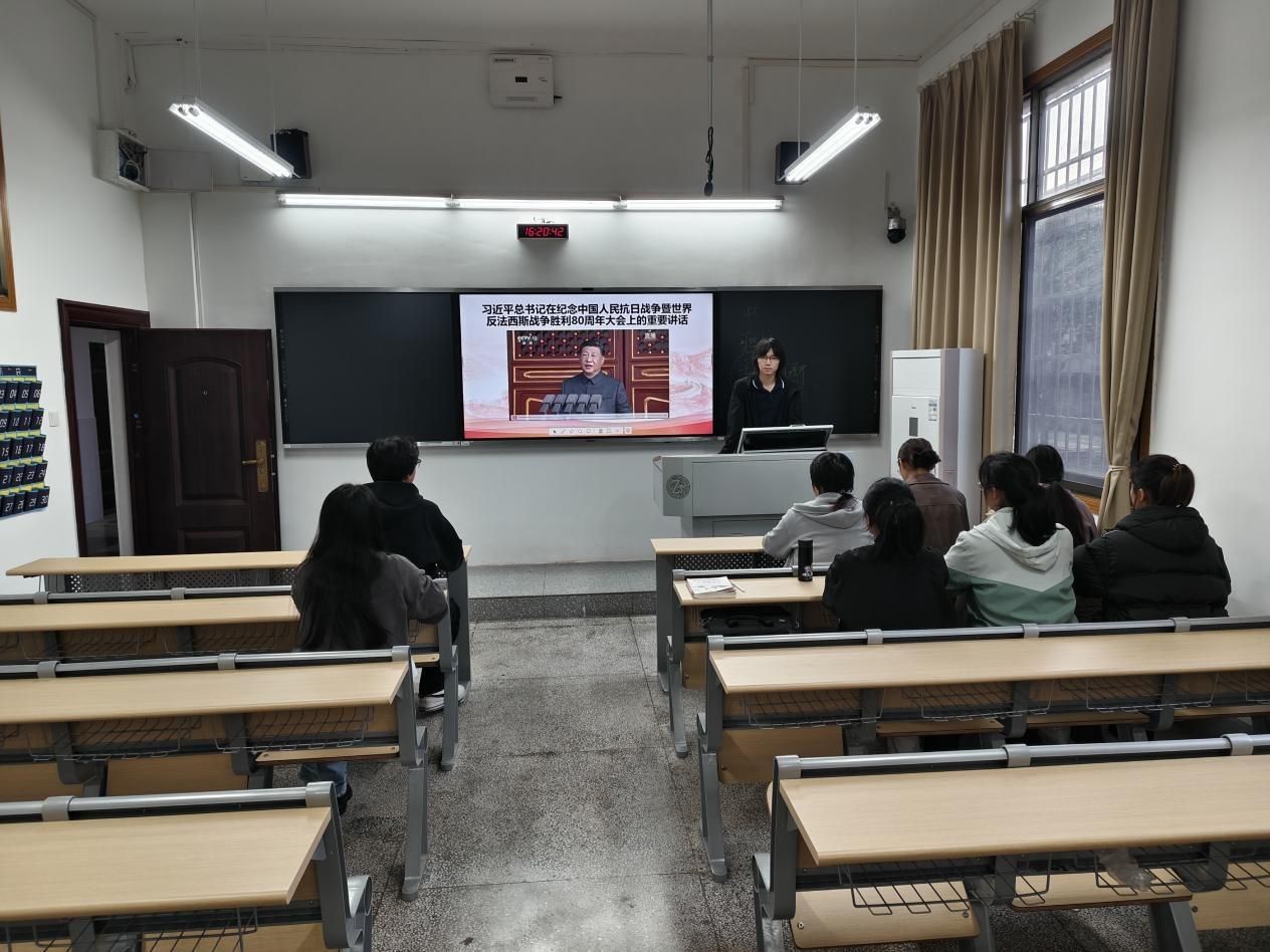 (通讯员 殷华骏 何冯威)11月13日下午,地理科学学院(以下简称“地科院”)青马小组第十组于实训楼201教室开展“学习习近平总书记在纪念中国人民抗日战争暨世界反法西斯战争胜利80周年大会上的重要讲话”专题学习活动。此次活动由组长殷华骏主持,将理论学习与“鉴往知来,砥砺前行——抗战精神指引下的青年担当”主题研讨会有机结合。