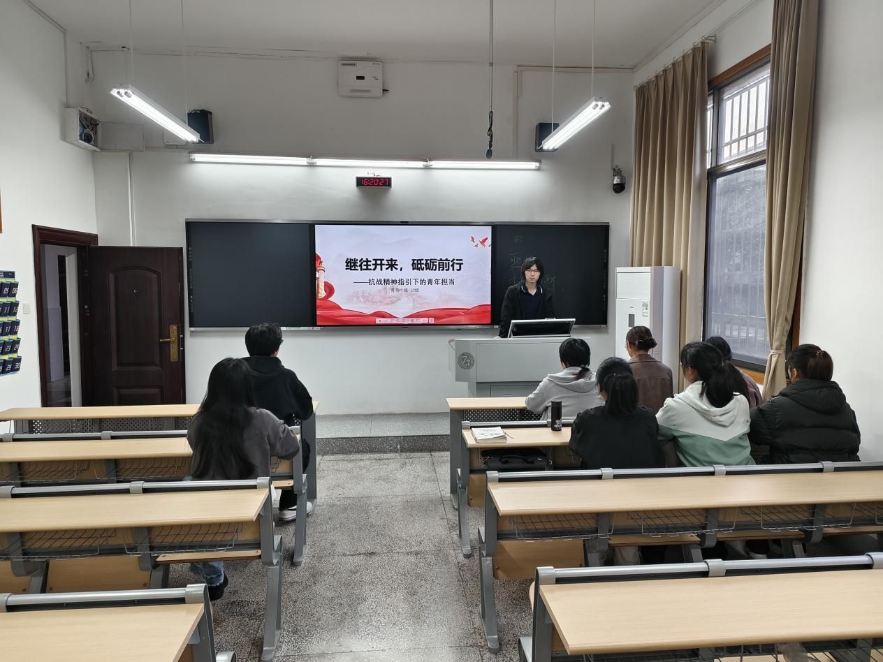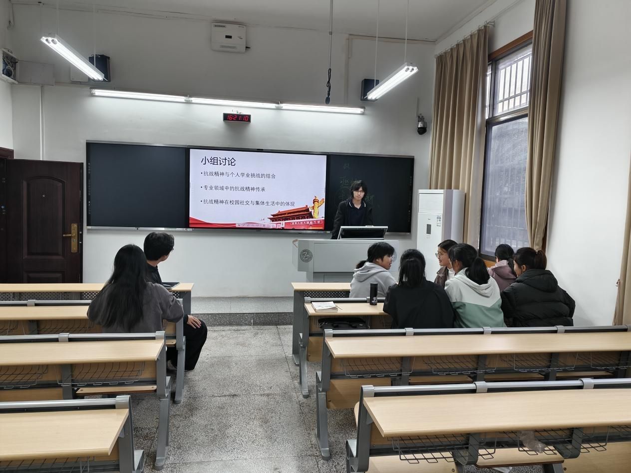 活动伊始,全体成员集中观看了习近平总书记重要讲话的新闻视频片段及《抗战中的青春》纪实短片。在理论学习环节,殷华骏带领小组成员研读了重要讲话核心内容,重点解读了“抗战精神”的时代内涵与当代价值。随后的研讨环节,成员们围绕“抗战精神与专业实践”“青春担当与时代使命”等议题展开交流学习。期间组员们结合学生工作经历,分享了“将团结协作的抗战精神运用于社团管理,化解团队矛盾”的实践体会。