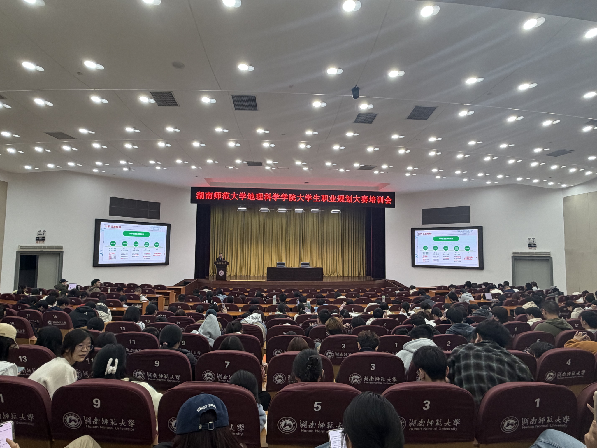 (通讯员 刘亦婷 朱宇晨 于昕禾)11月13日晚上七点,地理科学学院于国际学术报告厅开展全国大学生职业规划大赛专项培训。地科院学工办主任杨惠君和23级辅导员李沅朋担任此次活动主持人。颜盈利担任主讲人。