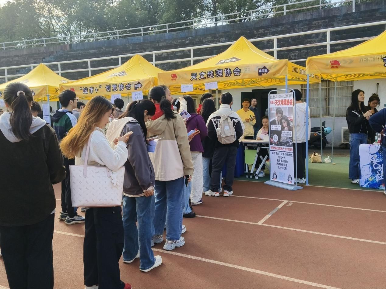 (通讯员 赵梓涵 梁诗玉)11月16日上午,我校一年一度的“百团大战”社团招新活动在北院田径场举行。其中,天文地理协会以其独特的学科魅力与丰富多彩的互动体验,吸引了大量现场的新生驻足与加入。