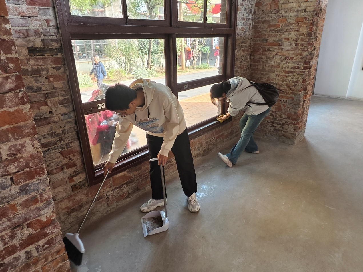 (通讯员 李一诺 尹平)11月16号上午,地理科学学院团委青年志愿者工作部 (以下简称“地科院青工部”)在233艺术社区组织开展了“艺展终章,志愿守藏”展览收尾清扫活动。此次活动旨在协助展馆工作人员完成场地卫生清洁、展具整理、资料归档等工作,确保展厅顺利恢复原状。