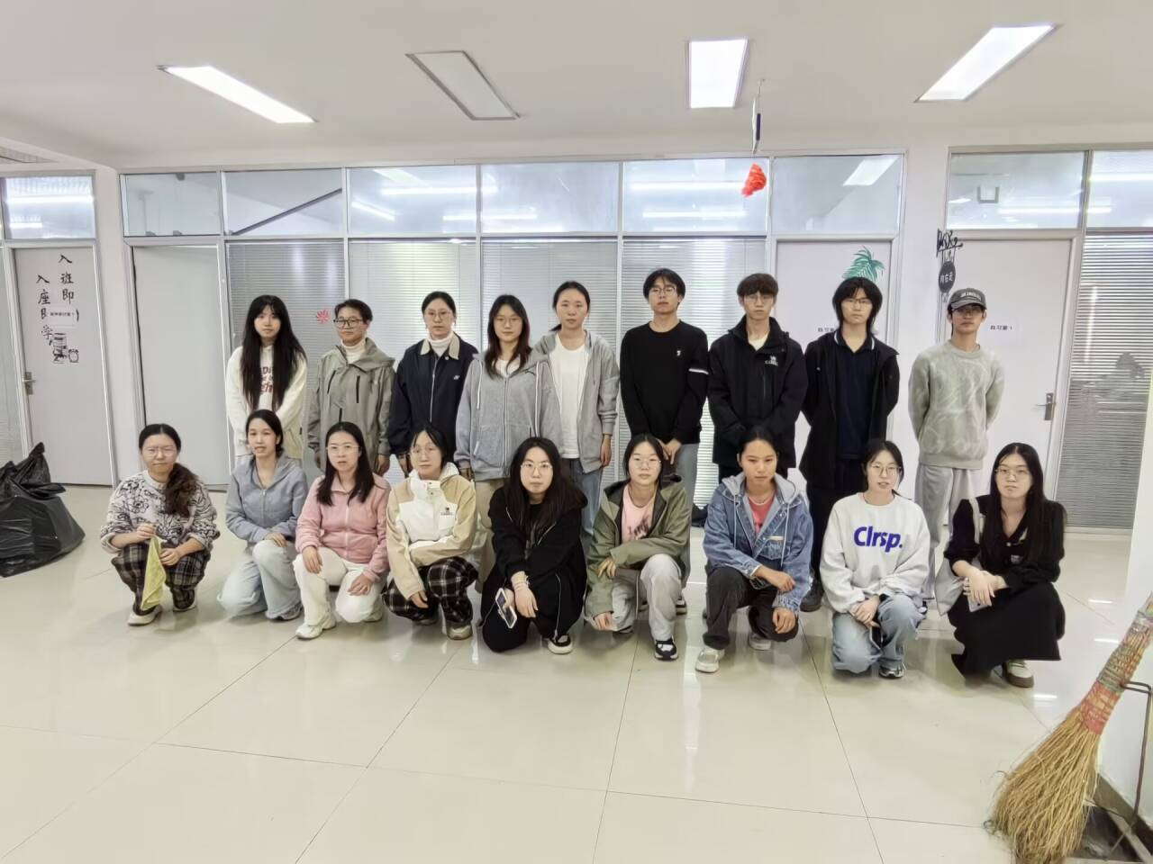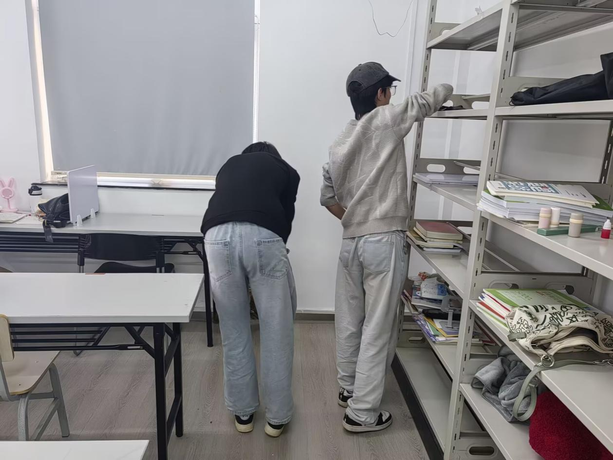 活动开始前,负责人给志愿者们分发手套和打扫工具并强调注意事项。活动正式开始,志愿者们被分成七个小组,迅速投入到紧张有序的工作中。组内分工明确,配合默契:四个负责清扫的小组手持打扫工具对自习室、研讨室、办公室进行细致清理,并对公共区域进行打扫。另外三个负责整理书籍的小组耐心将书籍分类、排序,让书架恢复整齐有序。过程中,志愿者们发扬不怕脏、不怕累的精神,细致清理每个角落,确保书屋窗明几净、井然有序。在志愿者们的努力下,书屋整体环境得以优化。