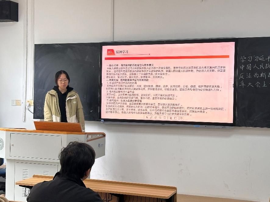 (通讯员 陈逸南 蒋麦莎 王梦媛)11月12日中午,地理科学学院(以下简称“地科院”)青马小组第五组在经纬楼217教室开展主题活动,小组将“习近平总书记在纪念中国人民抗日战争暨世界反法西斯战争胜利80周年大会上的重要讲话”理论学习与“鉴往知来,砥砺前行——抗战精神指引下的青年担当”研讨会相结合。此次活动由陈逸南主持。