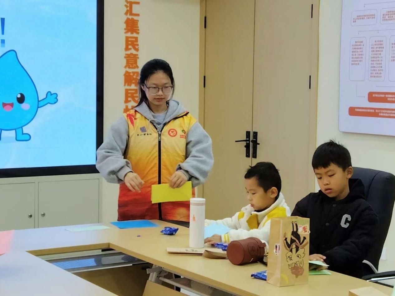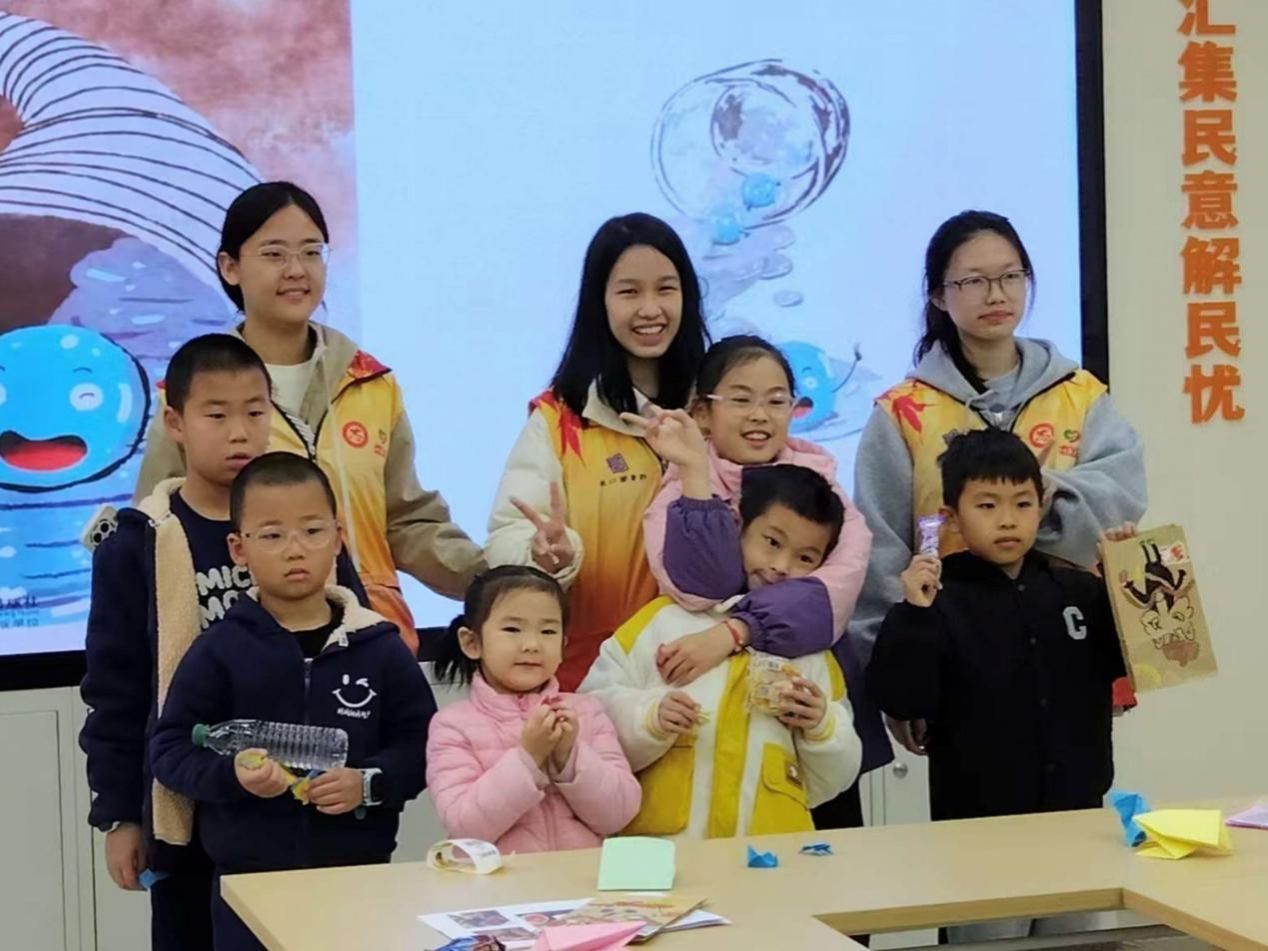 活动开始前,志愿者们提前到场布置好活动场地以便活动有序开展。在小朋友们进行签到并落座后,绘本活动正式开始。主讲人通过讲解小水滴跨越山川、溪流的寻海之旅,引发小朋友们对绘本内容的思考。志愿者在讲解绘本过程中,穿插了有趣的热场活动“折折小青蛙”,小朋友们纷纷选择了自己喜欢的彩纸并折出了可爱的小青蛙,这不仅调动了小朋友们参与的积极性,同时也活跃了现场氛围。活动结束,志愿者与小朋友们合影留念并打扫了场地。