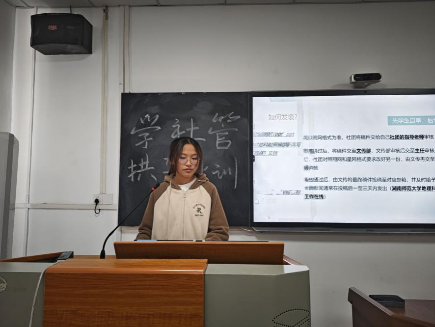 (通讯员 王慧琳 黄益庭)11月26号中午,地理科学学院学生社团管理服务中心(以下简称“地科院学社管”)于二里半经纬楼215教室举办第四届“拱卒秋训”第四期培训会。地科院学社管全体成员共同参加此次培训。