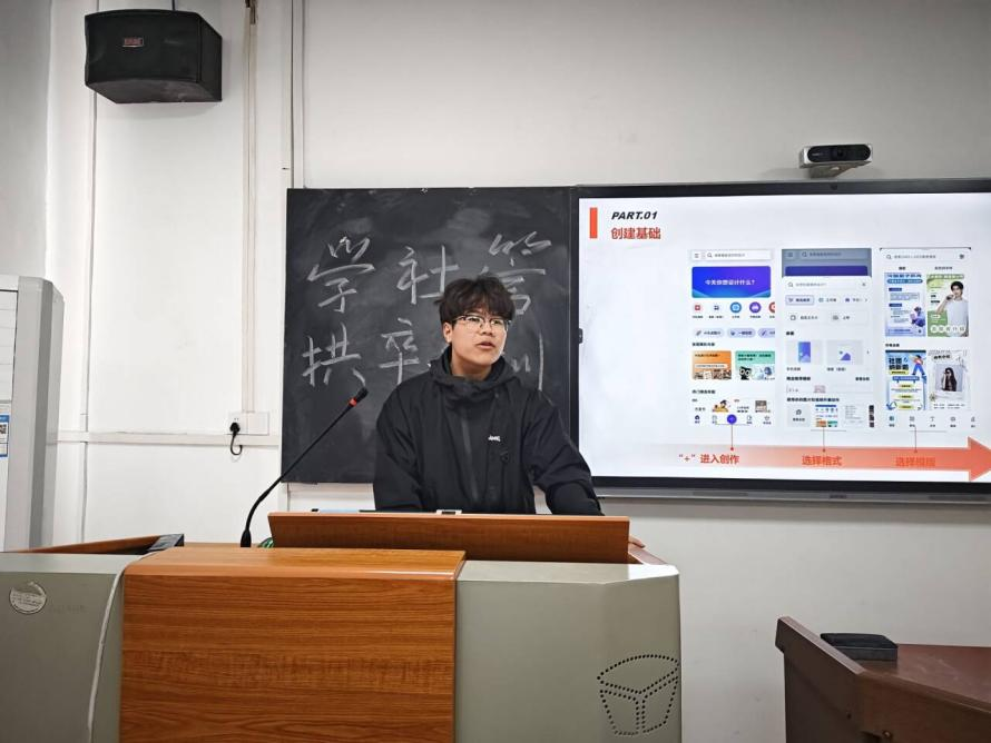 文传部部长向佳蓓进行了宣传技能培训。内容包括了前期的文案写作,海报制作,以及后期的活动跟进与总结。她细致地讲明了每一个步骤中需要注意的事项,并分别列举了优秀范例和错误示范,让我们对宣传工作有了更深的了解;文传部副部长唐文鑫讲解了新闻报道的要素和注意事项,并针对部分问题进行了指正。此外,学社管副主任方为还讲解了海报制作的要领。在讲解中,他展示使用海报制作工具的过程,让我们对于海报制作工作有了新的感受。