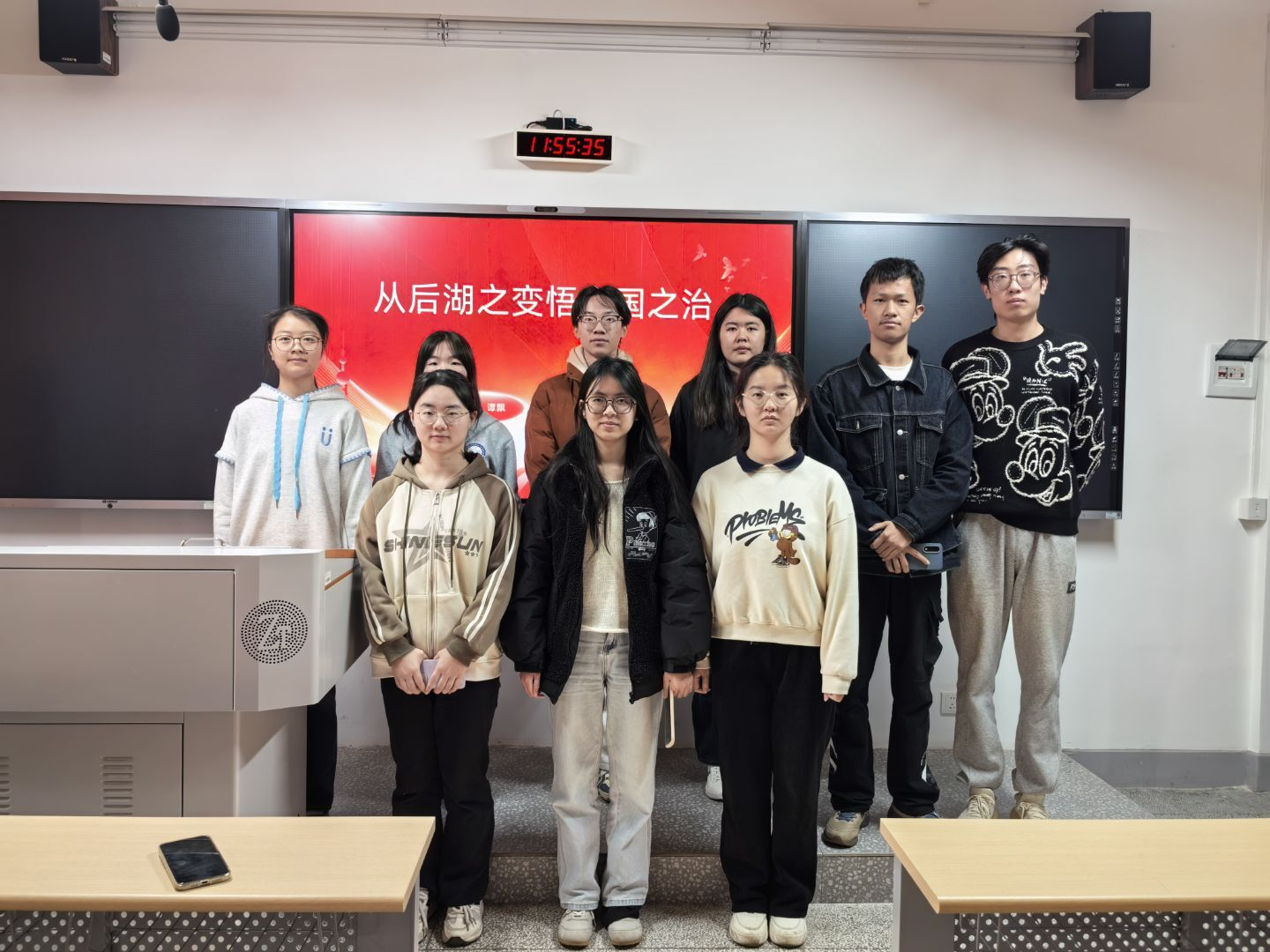 (通讯员 高曼 何冯威)12月9日上午,地理科学学院青马小组第十一组于达美楼206开展理论学习活动。本次学习聚焦《习近平谈治国理政》第五卷中生态文明建设相关内容,以“从‘后湖之变’看‘中国之治’”为主题展开研讨,活动由组长谭飘主持。
