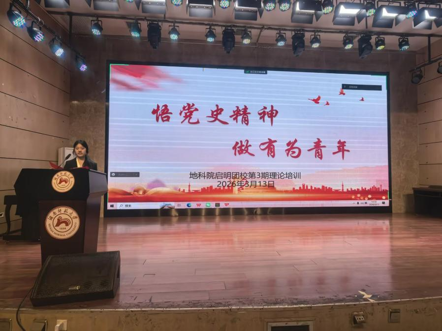 (通讯员 关雅心 范悦怡)3月13日中午,地理科学学院(以下简称“地科院”)第三期理论培训在桃花坪树达楼113报告厅举行。此次培训由“地科院”团委书记周沐为学员讲解,青发部干事王乙凡主持,“地科院”启明团校理论培训班全体成员参加。
