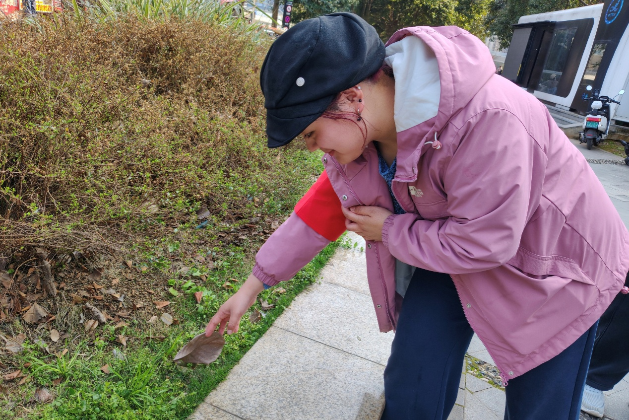 活动开始,负责人结合梅溪湖沿岸的步道走向和绿地分布,将志愿者划分为四个小组,各小组配备扫帚、垃圾夹、分类垃圾袋等工具,分片推进清理:先用扫帚集中清扫步道上的落叶、塑料包装等大片垃圾,再以垃圾夹细致捡拾绿地缝隙、湖边石缝里的烟头、食品残渣等顽固杂物,确保区域无卫生死角。负责人同步进行影像记录,一方面通过网络平台宣介环保理念,另一方面手持宣传标语向30余位驻足路人介绍活动主旨,不少市民表示愿参与后续环保行动。活动尾声,志愿者将清理的1.2公斤垃圾分类分拣后,规范投放至公园分类垃圾桶并合影留念。