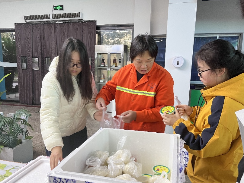 在活动开始之前,负责购买早餐的理事们准备了包子、鸡蛋等营养早餐,用泡沫箱做好保暖措施后运送到各区域,参与活动的志愿者们也按时到达指定区域。准备工作做好后,理事们和环卫工人负责人商量领取时间和地点后等待环卫工人们的到来。看到环卫工人们的身影后,志愿者们将热气腾腾的早餐送到这些劳动工作者们的手上,早餐分发完毕后,各区域志愿者们和环卫工人们进行了合影留念。