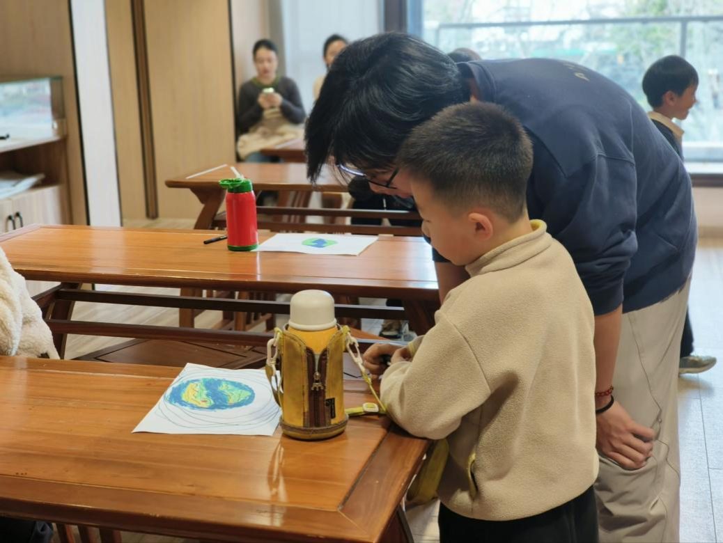 活动现场,协会成员围绕地球结构、昼夜更替、四季变化等基础地理知识展开讲解,结合ppt演示、模型观察等形式,将专业知识转化为适合低龄儿童理解的内容。讲解过程中设置了趣味问答互动环节,小朋友们积极参与、主动提问,现场秩序井然、氛围轻松。孩子们通过沉浸式听取讲解、动手绘画自己眼中的地球,直观认识地球的基本特征与自然现象,进一步加深了对地理知识的印象。